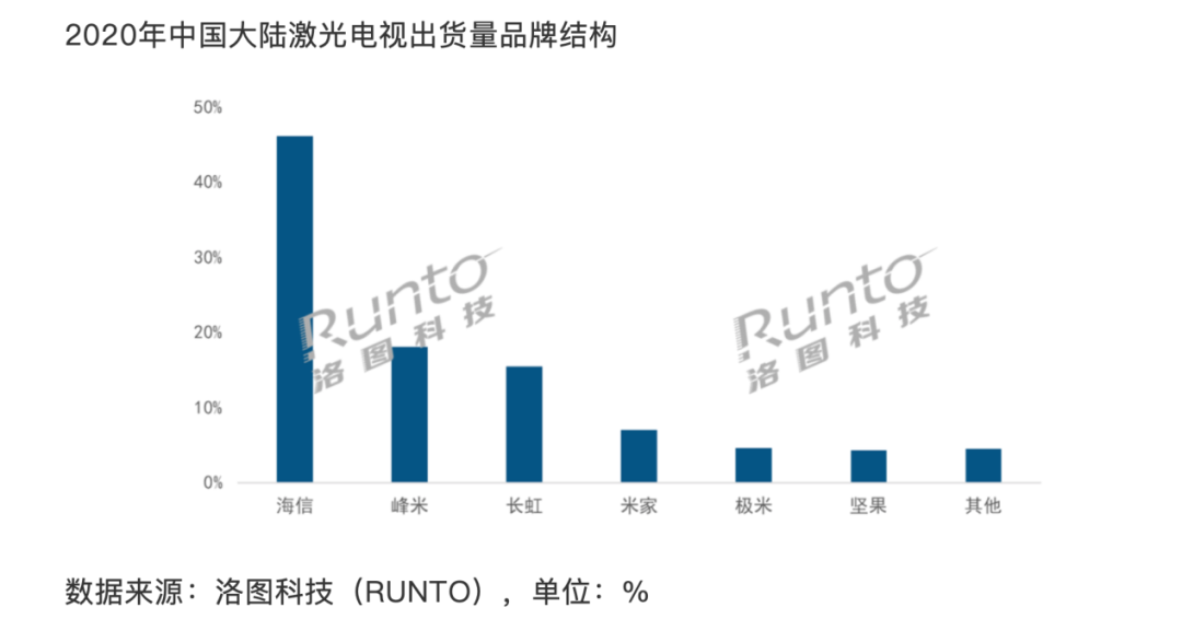 而在技术路线之争上,风向一向变得很快。如果说2019年电视行业的技术之争还处于混战状态,以海信为代表的激光电视以及以TCL为代表的量子点电视以及其他厂商还存在一较高下之心,那么站在2021年的当下,技术路线之争的形势已经明朗。