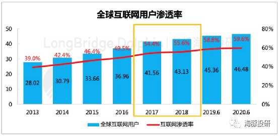 当然如果剔除疫情因素,几大社交平台的流量增速都存在趋势性放缓,甚至增长并不轻松。全球互联网渗透率在2018年也似乎进入一个小瓶颈。
