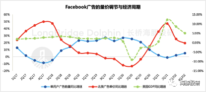 背后是FB基于流量上的垄断优势保证高ROI和内容生态的平衡。因此无论是广告量还是价,他们的变化都会相对GDP预期先有所反映。