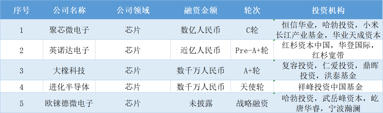 TOP1:聚芯微电子成立于2016年,是一家拥有独立自主知识产权的创新型芯片设计公司。目前,公司已拥有了以智能音频芯片、3D视觉传感器、光学传感器和触觉感知芯片为代表的多条产品线业务。《「聚芯微电子」完成数亿元C轮融资,将继续丰富智能感知芯片产品线》