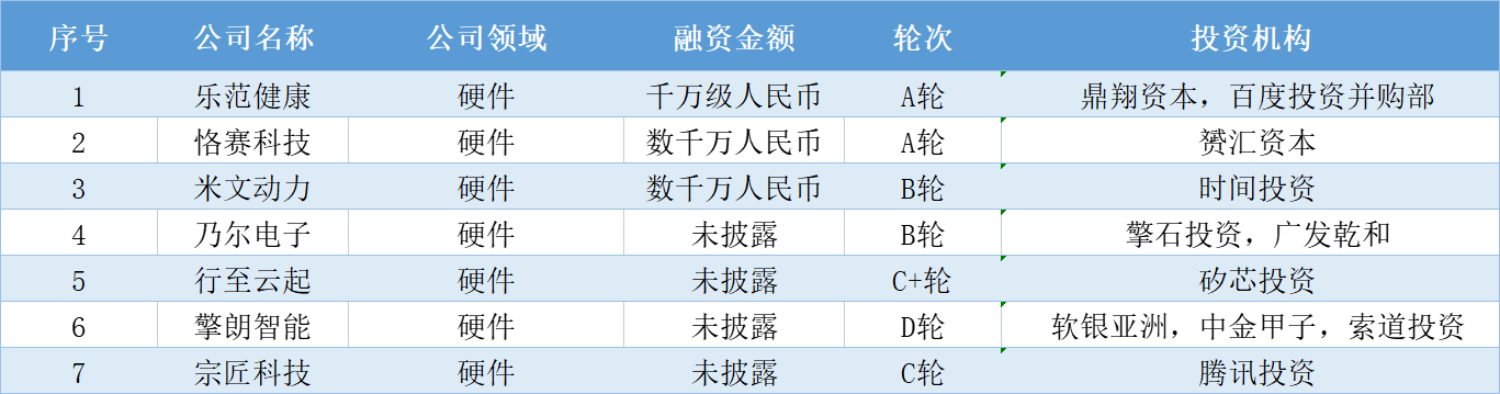 TOP3:米文动力成立于2015年,是一家边缘计算及嵌入式人工智能系统研发商,专注于机器人领域的通用智能控制系统的研发,通过打造一款机器人大脑,搭建低速无人驾驶通用平台,致力于提供嵌入式AI超算平台和软硬一体化的机器人智能升级端到端整体解决方案。本轮融资将用于加大产品研发力度。