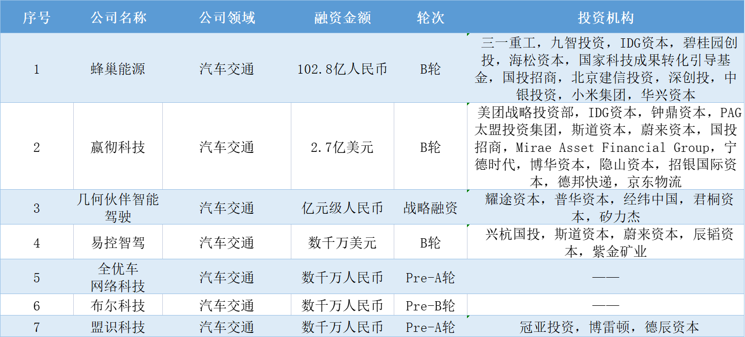 TOP3:几何伙伴成立于2018年,基于机器感知和深度学习,采用“低成本、车规级、高可靠、易量产”的技术路线,为L2-L4级自动驾驶提供“融合感知+智能决策”软硬件集成系统。本轮融资主要用于加速量产新一代架构的自动驾驶软硬件集成系统。《36氪独家 | 自动驾驶公司「几何伙伴」获近4亿人民币Pre-A轮融资,经纬、小米、百度等注资》