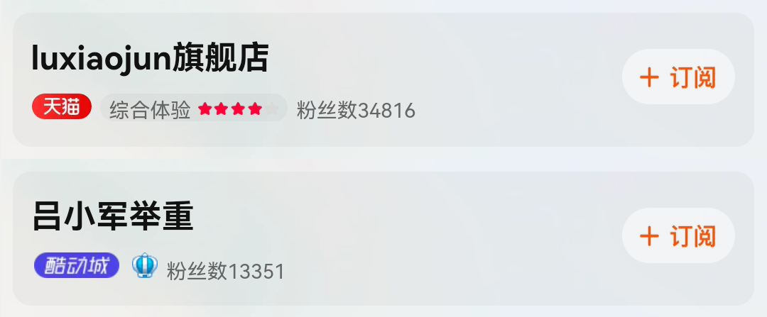 更有人顺藤摸瓜,找到了吕小军授权运营的淘宝店和天猫店。店铺售卖杠铃片、深蹲架等举重健身用品,总粉丝数超过4万。