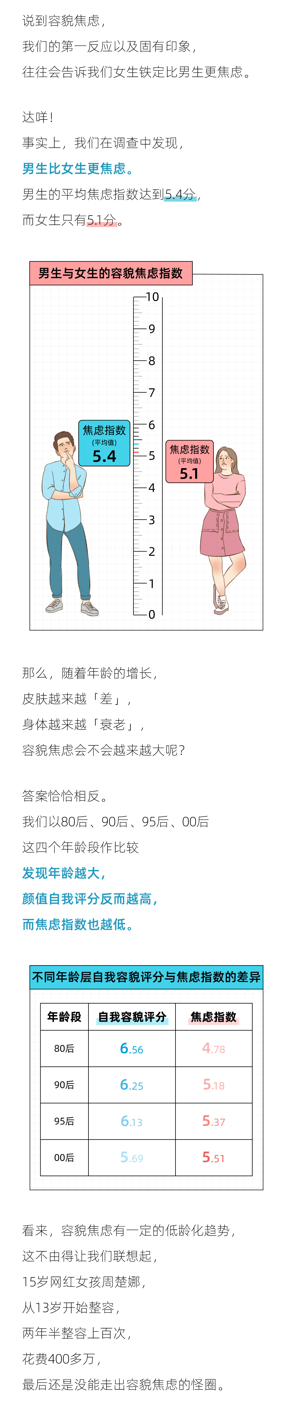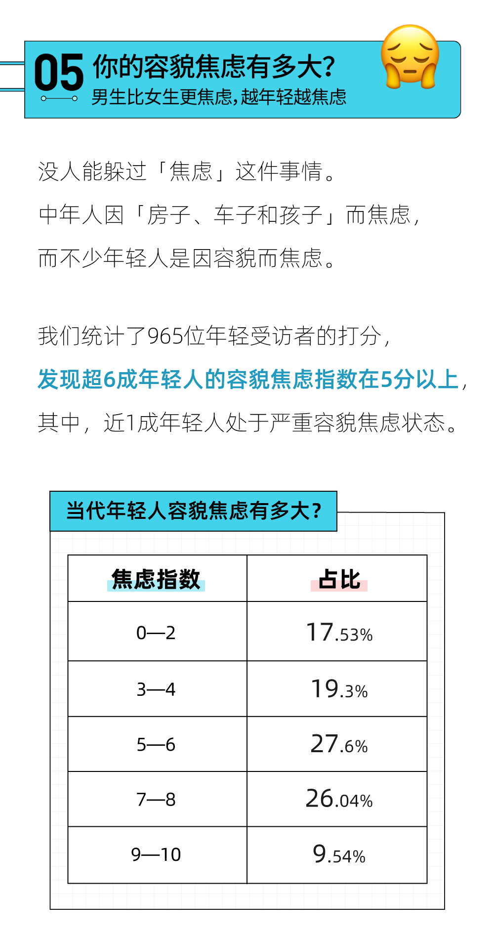 欣慰地是,我们看到越来越多的年轻人意识到这个问题,也开始尝试与自己的容貌焦虑和解。 其实,无论是健身、化妆,还是整容,都只是一种选择。追求美是人类的天性,并没有对错褒贬,也没有高低贵贱之分。但区别在于你要意识到你是发自内心想要变得更好,还是只是受困于某种单一审美标准的病态焦虑之中。